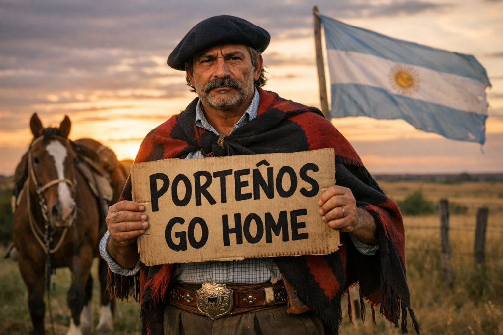 El gaucho, empoderado, no se desanimó, embriagado por su espíritu emprendedor. Orientándose por el acento y por la costumbre de confundir cualquier pajarraco que volara con un cóndor, comenzó a detener porteños, y -atrayéndolos con la promesa de una Pelopincho- los arrió para la comisaría.